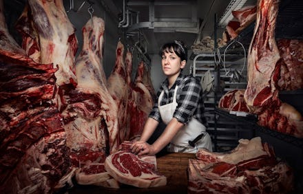 The series, Crisman explained in an interview with A Photo Editor, started with an initial photo shoot with Heather Marold Thomason, a Philadelphia butcher. Following his meeting with Thomason, Crisman said, "It immediately became something I wanted to further develop." He went on to photograph a truck driver, a firefighter and a lobster fisherwoman, among others.