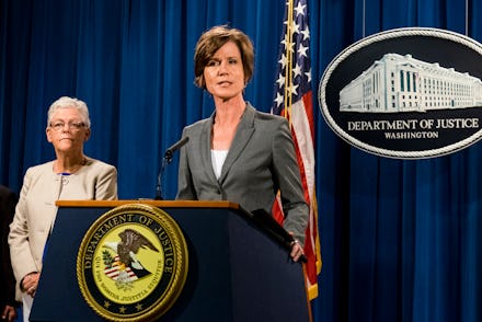 "[At] present, I am not convinced that the defense of the executive order is consistent with my responsibilities nor am I convinced that the executive order is lawful," Yates wrote in a letter to top DOJ lawyers on Monday. "Consequently, for as long as I am the acting attorney general, the Department of Justice will not present arguments in defense of the executive order, unless and until I become convinced that it is appropriate to do so."