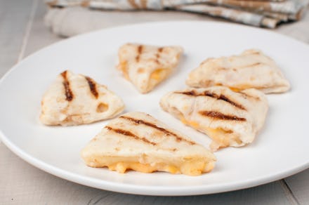 Delgado recommended making a snack-size quesadilla with an individually wrapped low-fat string cheese and a tortilla. "Use corn or whole wheat tortillas instead of white flour tortillas," Delgado suggested. "The combination of fiber and protein will be sure to keep you full and satisfied until your next meal."