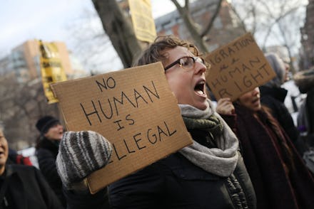 On Saturday, hundreds of protesters filled New York's Washington Square Park in a rally for immigrants' rights that directly followed a demonstration for Planned Parenthood and reproductive rights. A subsequent protest convened at the city's U.S. Citizenship and Immigration Services office on Saturday evening. But New York is far from the only area affected.