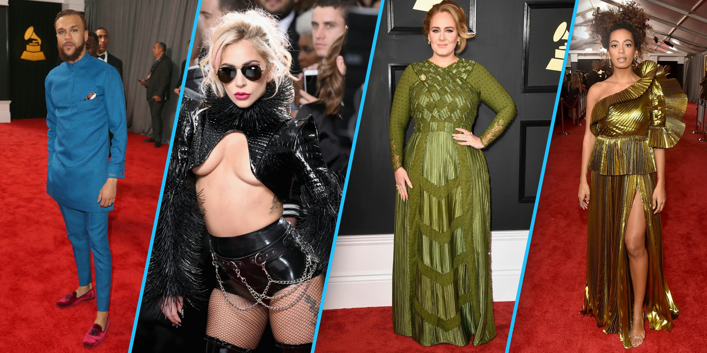 The 59th annual Grammy Awards red carpet did not disappoint on the gown front, from Adele's stunning custom olive-green Givenchy to Paris Jackson's multicolor-beaded Balmain to Santigold's pink embroidered Gucci. And let's not forget, Rihanna's head-turning Armani Privé.