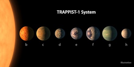 But the question as to whether there's extraterrestrial life on these planets is still very much a hypothetical, as Time pointed out. Trappist-1, a red dwarf star, is both smaller and colder than our sun. The planets that orbit it are clustered more closely, and they probably only ever face Trappist-1 from one side. Red dwarves are also more subject to solar flares than are big yellow stars like ours, which could be ruinous for closely circling planets.