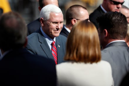 Pence's visit to the cemetery was unannounced. He was already in the state to visit a Fabick Cat facility to promote small business.