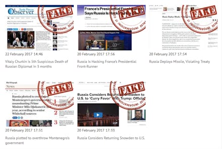 According to the New York Times, one of the publications on Russia's shit list, the country's foreign ministry added a fake news advisory page to its press service section. It features screenshots of five headlines — from the Santa Monica Observer, Bloomberg, the Times, the Telegraph and NBC News — all stamped with a big red FAKE and all captioned, "This article puts forward information that does not correspond with reality."