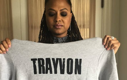 Prior to the beginning of Hollywood's biggest night, the Oscar-nominated director for the documentary 13th tweeted out a reminder that today was the fifth anniversary of Trayvon Martin's death. The tweet included a picture of her holding up a hoodie with the words "TRAYVON" emblazoned across the front.