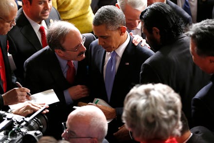 For nearly 30 years Rep. Eliot Engel (D-N.Y.) has been showing up for the president's annual address to Congress as many as 12 hours before it starts just so he can snag seat close enough to shake the commander-in-chief's hand as he enters the House chamber. It's worked out great for Engel: every year, he's guaranteed a little camera time when all the networks zoom in on the president as he enters the hall.
