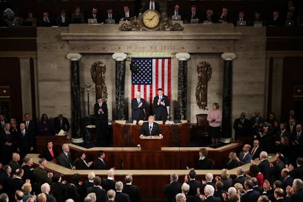 A number of members of Congress were spotted wearing a blue ribbon on their lapel during President Donald Trump's joint address Tuesday night.