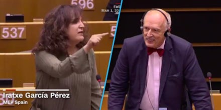 "Look, according to your theory, I should not have the right to be here as a member of this parliament," Spanish Socialist Iratxe Garcia-Perez shot back. "And I know it hurts you, I know it hurts and worries you that today women can sit in this house and represent European citizens with the same rights as you."