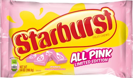 But times they are changing, and these days, a whole pack of pinks can be yours — no luck or generous significant other required. The "All Pink" packs are available in the larger family pack size and also the standard Starburst tubes, seen below.