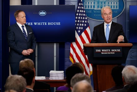 At Tuesday's White House press briefing, the Trump administration trotted out Health and Human Services Secretary Tom Price to defend the GOP's new health care bill. But less than a minute into his comments about the state of our health care system, the new health secretary was already raising some eyebrows.