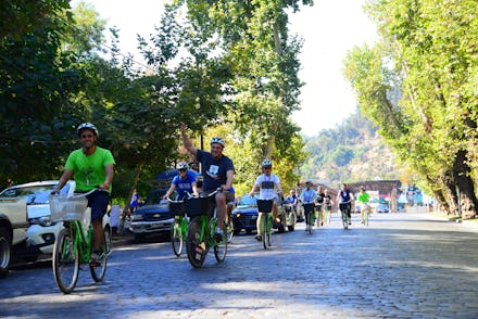 The afternoon tour I took on the same March Monday that I spoke to Lewis, "Parks and Politics," was led by a guide named Rodrigo. He led us as we cruised on our neon green bikes through Santiago's beautiful parks and neighborhoods, periodically stopping along the way to tell us details about history and culture.