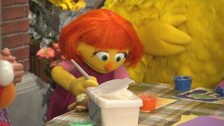 The team of writers reportedly worked with autism organizations, families and educators on how to accurately depict a child with autism, as well as how to appropriately explain the condition to young viewers. According to Vulture, this means, for example, that Julia's eyes needed to have an "intense look" but still be perceived as friendly and approachable.