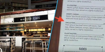Master Toms, a cafe that describes itself as a "California inspired funky breakfast and a burger bar with a twist," had a menu board advertising an "Uncle Tom" burger, News 9 reported.