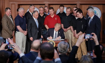 "My administration is putting an end to the war on coal," Trump said, standing before a group of coal miners. "We're going to have clean coal. Really clean coal."
