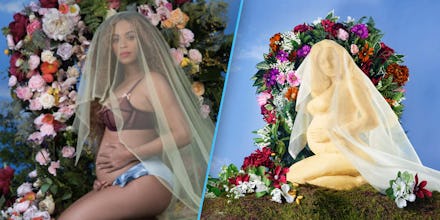The Telegraph reported that "Brie-oncé" took 28 hours to make and uses more than 40 pounds of cheddar cheese. The sculpture's look was, obviously, inspired by Beyoncé's iconic pregnancy announcement photo from February, which the star posted on Instagram to announce to the world that she is pregnant with twins.