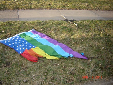In a small town of around 13,000, according to the Hudson website, one flag burglary would stand out. But the Hesters are not alone. Three other houses' rainbow flags were stolen. One of them was burned on the sidewalk, with the flag's charred remains left behind.