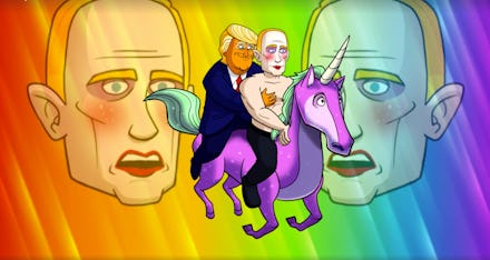A short animated segment on The Late Show depicted a cartoon version of the Russian president sporting Daisy Duke's, covering RuPaul's famous single, "Supermodel (You Better Work)," and his nipples swishing from side to side.