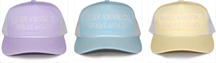 The "limited one-time run" made largely out of mesh (unlike the original) comes in three new colorways — light blue, yellow and lavender — and retail for $50 each, twice the cost of the original hat's $25 price tag.