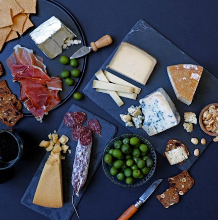 Show mom she's your MVP with this easily shareable cheese gift set that includes gruyere, clothbound cheddar, Point Reyes blue, prosciutto, olives, crackers and more tasty snacks.