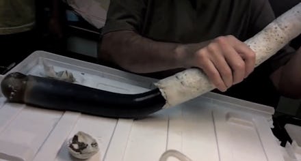 Distel described the moment the team opened up the giant shipworm's tube-like shell as "quite amazing." Scientists didn't even know what color the giant shipworm would be until it slid out.