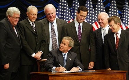 Though one favored Bush slogan was "W Stands for Women," the reality of his presidency tells a different story. On his first day as president, in 2001, Bush signed off on the "global gag rule," the Ronald Reagan-era policy beloved of conservatives that blocks international family planning services from receiving U.S. funds if they offer abortion services (that President Donald Trump recently revived). At the time, the Center for Reproductive Rights estimated that 78,000 women worldwide died from unsafe abortions each year, a number that would only rise if abortion access were cut — especially considering that the rule blocked funding for contraceptives and standard reproductive care.