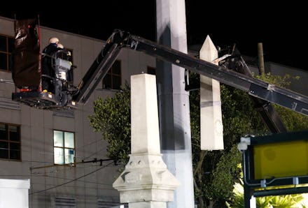 "These are the professionals you hired to take care of our history?" the angry voice of an apparent monument supporter bellowed, as workers dismantled and lowered the Battle of Liberty Place monument before dawn. The phallic statue commemorated white activists who tried to overthrow a biracial post-Civil War government in New Orleans, according to the AP.