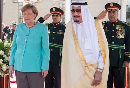 On Monday, German Chancellor Angela Merkel arrived in Jeddah, Saudi Arabia, for her business talks with King Salman sans headscarf. Merkel follows in the footsteps of British Prime Minister Theresa May, former first lady Michelle Obama, former secretary of state Hillary Clinton and former National Front president Marine Le Pen in their meetings with religious leaders in the Middle East.