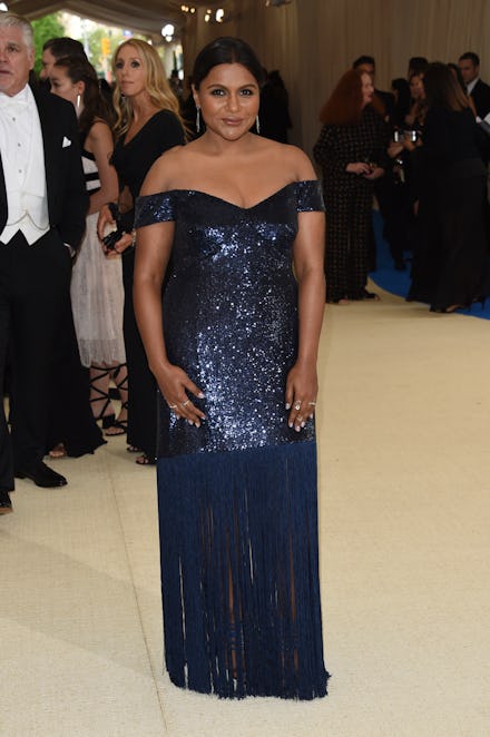 Never one to miss an opportunity to turn heads on the red carpet, Mindy Kaling arrived at the 2017 Met Gala in a gorgeous navy sequined gown.