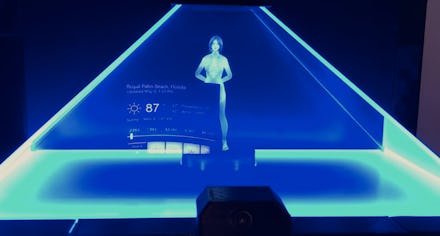 Jarem Archer, who works as a consultant through his business, unt1tled, created a hologram device to match Microsoft’s Cortana personal assistant from Windows 10. She’s just like Cortana the Halo character, which Microsoft based its own on — she’s a slightly translucent, blue-light babe with a hip-waist-bust ratio that exposes her origins in the world of gaming. But Archer’s Cortana is 3-D and paces around inside a pyramid prism that rests on a table. In his demo video, he asks Cortana if he’ll need an umbrella, and she then pulls up a graphic with the temperature and assures him that it’s “probably not necessary.”