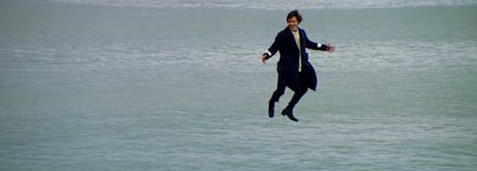 In the clip, Styles starts off walking in daylight near a large body of water and mountain. The camera then pans to his feet and he floats off the ground for a few seconds before landing. But this is only a test run. Once the song picks up, he floats and then soars and doesn't come back down. As Styles becomes comfortable with his powers, he even runs on the water.