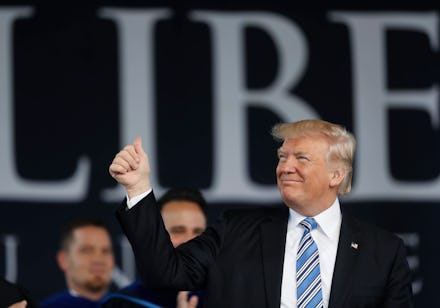 Trump returned the praise, calling Liberty a "place of true champions" and thanked evangelicals for helping elect him to office.