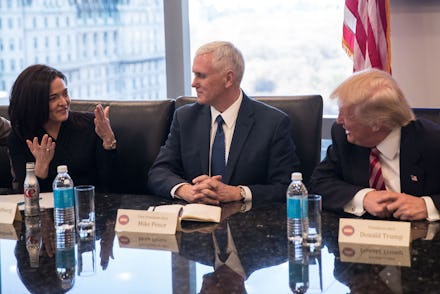 For years, she's positioned herself as a voice of working women while refusing to acknowledge the politicians and policies that exploit them — a kind of privileged feminism that lets her pander to both sides. (Consider Paul Ryan, who won Sandberg's "Lean In Award of the Day" in 2015 despite his outspoken stance against mandatory paid leave for new parents.) In December, Sandberg, along with other tech leaders, attended a roundtable with President Donald Trump but was unable to make the Women's March the following month, citing a "personal obligation," reported Re/code. (Sandberg did announce a sizable donation to Planned Parenthood.)