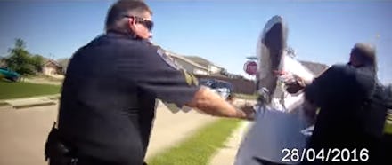 Footage of the incident — which occurred April 28, 2016 — was mailed to KDFW anonymously. It begins with at least three police officers approaching Stephenson, who is kneeling on a sidewalk with his hands on his head and fingers interlocked.