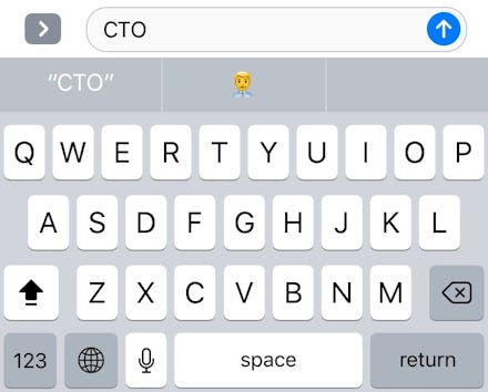 As Slack engineer Erica Baker pointed out on Twitter, when you type "CTO" into iMessage, the predictive emoji feature suggests you use a male worker emoji. When we tested it out, we found the same result. There's space for another emoji like, I don't know, a female worker emoji, but instead we just get a blank space. Cool.