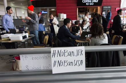 At the height of the chaos surrounding President Donald Trump's initial travel ban, Jorge Baron sprinted through Seattle-Tacoma International Airport to stop a taxiing plane. There were two immigrants aboard who were being ferried back home. Baron and his colleague, both lawyers, had a restraining order from a judge that kept the two men in the country. They were able to stop the plane before it took off. Meanwhile, at airports across the country, protesters gathered as hundreds of lawyers were settling in to take shifts, keeping constant watch over international arrivals and protecting the rights of more than 700 detainees nationwide.