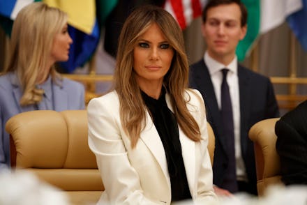 Was Trump resisting? Was she saying "Trust me, I hate him too"? Well, guess you can keep your conspiracy theories going, because over the weekend, while Trump was with her husband in Saudi Arabia for his first trip abroad, Trump did it again.