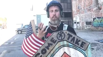 Dean was also caught on tape on May 7 at the so-called Battle of New Orleans, a planned fight between alt-right activists and antifascists over the removal of Confederate monuments. The fight never actually occurred, but Dean nevertheless showed up in armor, goggles, an American flag to be used as a weapon and rings with neo-Nazi insignia like the Iron Cross.