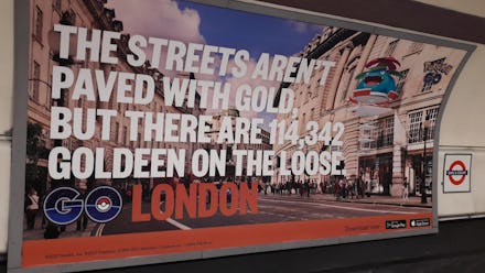 First, as a few posters noted, the advertisement's message, "The streets aren't paved with gold, but there are 114,342 Goldeen on the loose," is a play on folk character Dick Whittington's quote, "London streets are paved with gold." Another fan argued that this is actually meant to promote a new London transit campaign, in which case it's more focused on the city than the actual game.