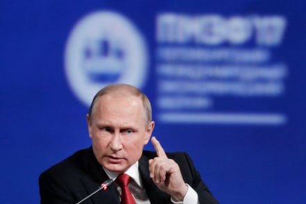 During a panel interview at the St. Petersburg International Economic Forum moderated by NBC News journalist Megyn Kelly, Putin also said that claims of Russian hackers meddling in the election in order to sway it in favor of President Donald Trump amounted to "internal political bickering."