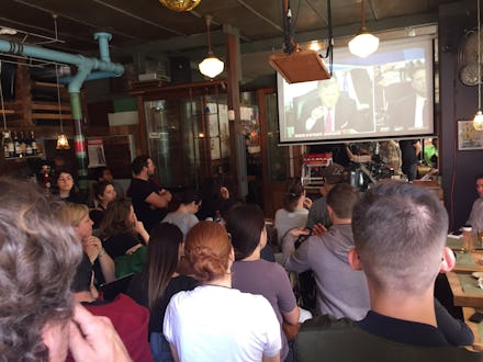Building on Bond, a coffee shop and bar in Brooklyn, New York, hosted a viewing party to watch the 10 a.m. hearing live on a large projector screen.