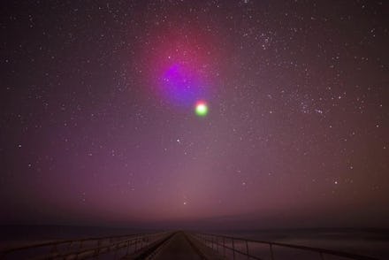 Skies will be painted glowing blue-green and red colors by a sounding rocket, which will release 10 soda can-sized canisters into the air to form the clouds. The rocket will launch from the Wallops Flight Facility in Virginia sometime between 9:04 and 9:19 p.m. Eastern, if all goes as planned, and the flight will last just eight minutes.