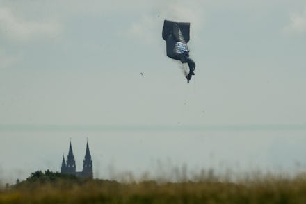 The Washington Post reports the blimp's pilot parachuted out of the blimp before it hit the ground.
