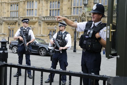 The arrest occurred outside Westminster Gate. Less than three months ago, 52-year-old Khalid Masood drove a car through a crowd of people on Westminster Bridge and stabbed a London police officer to death outside Parliament in an attack claimed by ISIS. Five, including Masood, were killed in the March attack and dozens were injured.