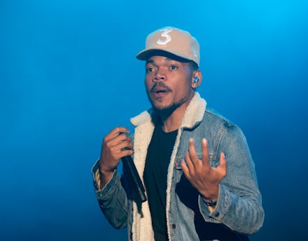 Back in April, Chance the Rapper opened his Be Encouraged tour by taking a bold stand against major labels. During his live rendition of "No Problems" — a song that confronts industry power players for trying to impede his work — he's taken to playing a visual that mocks the logos of music's biggest conglomerates.