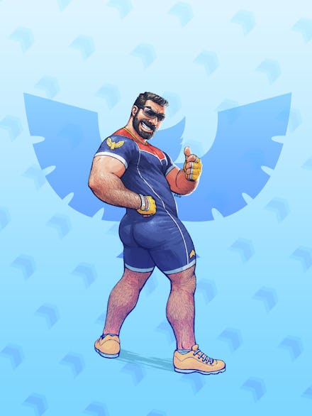 Mario’s not just shirtless — he’s tatted up and looking tough. He’s the kind of bear who’d be growly on the outside, but would curl up next to you in bed and snuggle in like an actual teddy bear. I see you, Mario. You’re too fluffy to be aggro for long.