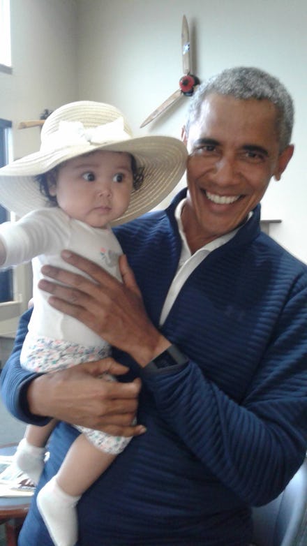 In a news cycle that is reliably terrible, here is one nice thing: a photo of former President Barack Obama holding a wide-eyed, chubby-cheeked baby in a festive sun hat. Please enjoy!