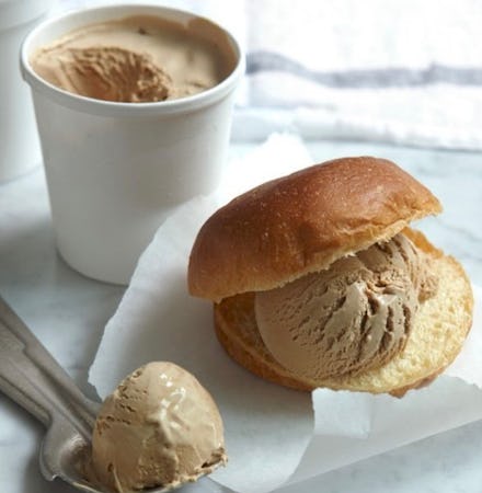 In that coffee shop in Rome, I ate the dessert with a small spoon. Lawson draws her inspiration from Southern Italy, where ice cream is stuffed between wedges of buttery brioche buns. She recommends you serve her coffee ice cream that way, too, but it’s impossible to go wrong here.