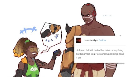 Overwatch fans are ready for Doomfist. Like, really ready. The fan community on Tumblr started shipping — fan-casting in a romantic relationship — him with Reaper before he was even announced. And now, they’ve moved on to pairing him up with the support hero Lúcio.