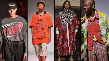 The last two days on the other hand (NYFW: Men’s is a four-day event, not a full week like it’s women-centric counterpart) were kind of wild. There were crowns made of plastic bottles and sweaters stitched as an ode to jerk chicken (which we approve of, by the way). Fabrics were bright and patterned, throwbacks to 1970s flair and luxury.