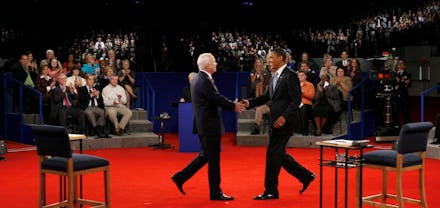 Respondents to Ali’s tweet also criticized McCain’s response to an audience member’s allegation that Obama was an “Arab.” Many saw McCain’s reply — ”No, ma’am, he’s a decent family man [and] citizen” — as implying that being “Arab” and a “family man and citizen” were mutually exclusive. It’s unclear if that’s what McCain meant, though his wording leaves too much wiggle room for comfort. Either way, between that and the senator persistently linking Obama to terrorism and untrustworthiness, it’s hard to find much to celebrate in this video.